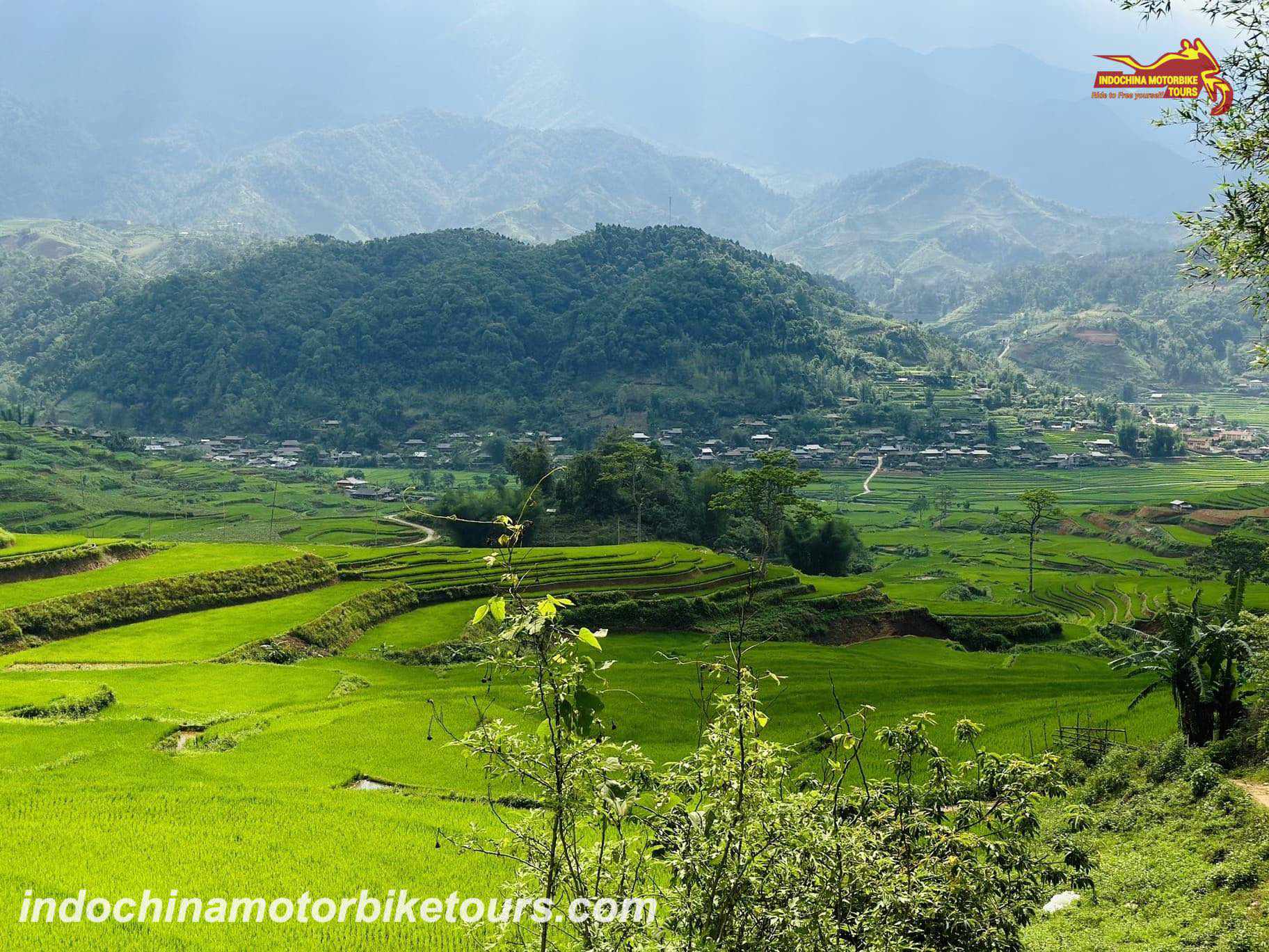 The journey continues with a climb through Hang Kia – Pa Co, home to Hmong communities. The winding road challenges your big bike with sharp bends and steep climbs, but the reward is a horizon filled with cloud-capped peaks. You’ll stop in Hang Tau Village, a hidden gem where traditional wooden houses sit amid fields of peach blossoms and plum orchards.