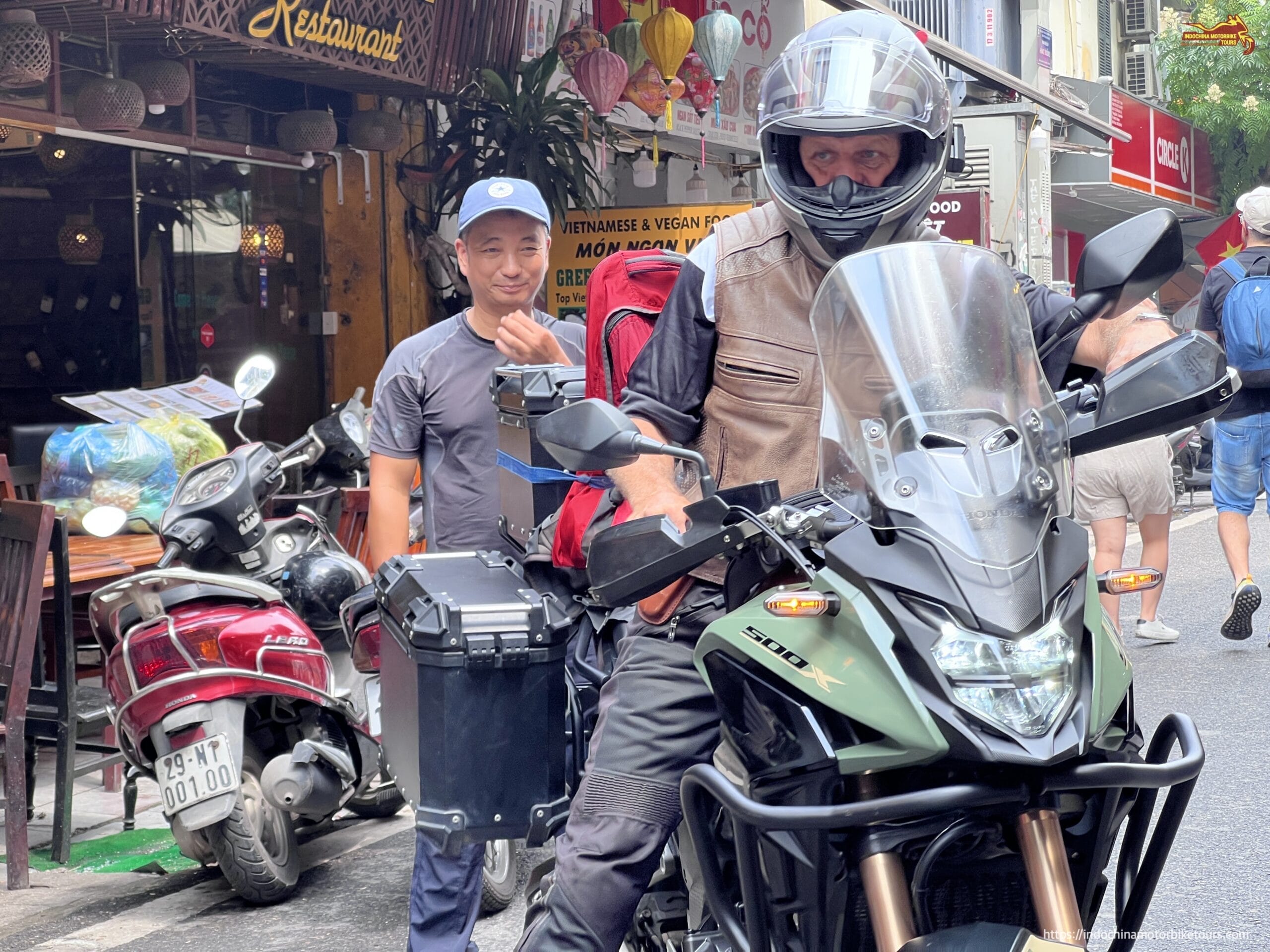 The morning begins with excitement as you mount your Honda CB500X or BMW GS1250 and ease out of the city. Soon the urban chaos dissolves into open countryside, where rice paddies stretch under the sun and farmers in conical hats tend the fields.