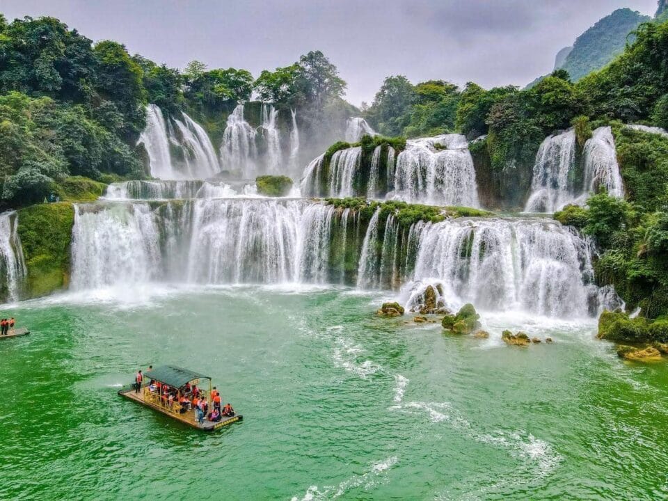 Arriving at Ban Gioc — Asia’s fourth largest waterfall, straddling the Vietnam–China border — you’ll be greeted by the thunderous sound of cascading water. Spend the evening in a riverside lodge or comfortable guesthouse nearby, soaking up the evening mist.